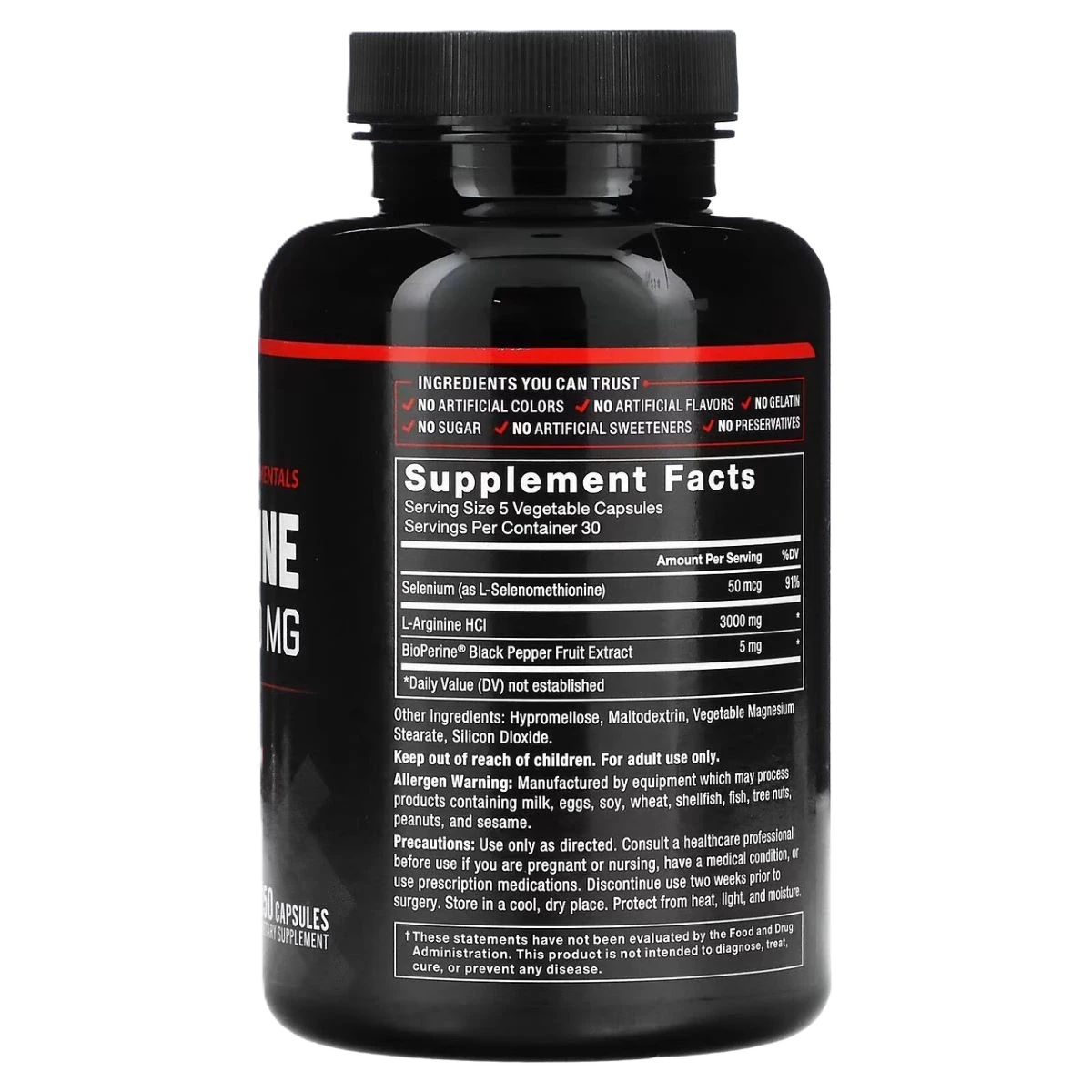 السيلينيوم (كما ل-سيلينوميثيونين)، ل-أرجينين حمض الهيدروكلوريك، بيوبيرين مستخلص فاكهة الفلفل الأسود، الجيلاتين، مالتوديكسترين، ستيرات المغنيسيوم، ثاني أكسيد السيليكون