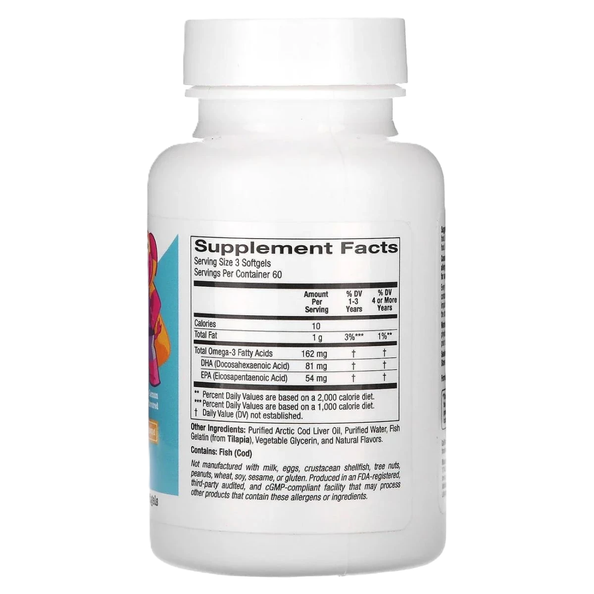 احماض اوميجا -3الدهنيه في درجة عاليه من النقاء بنكهة الفواكه اللذيذه مزود بفيتامين د وفيتامين ه لفعاليه اقوى