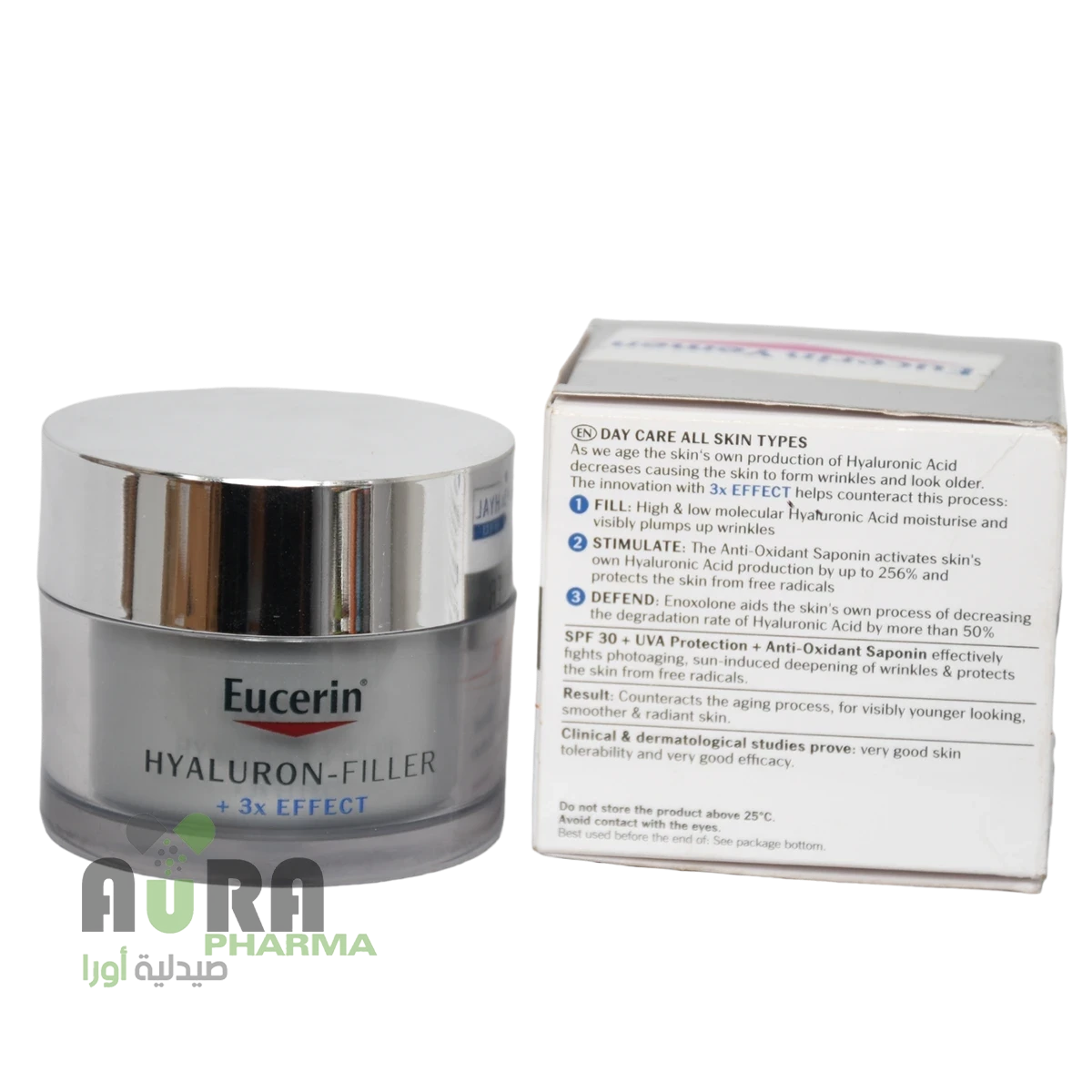 مع عامل حماية من الشمس SPF30 ومرشح للأشعة فوق البنفسجية ، يوفر كريم Eucerin Hyaluron-Filler Day (البشرة الجافة) حماية