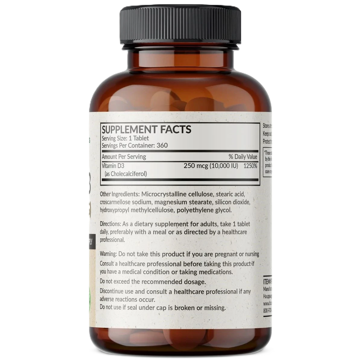 يوفر فيتامين د3 من فيوتشربيوتكس جرعة فعّالة تبلغ 10,000 وحدة دولية من فيتامين د3 لكل قرص. وبما أن فيتامين د يتكون طبيعيًا في الجسم مباشرةً من التعرض لأشعة الشمس، فقد تتأثر مستوياته بسهولة إذا قلّ الوقت الذي نقضيه في الهواء الطلق. يُوفر فيتامين د3 من فيوتشربيوتكس نفس شكل فيتامين د الذي نحصل عليه من الشمس، ويُساعد على تجديد مستوياته يوميًا للحفاظ على صحة جيدة بشكل عام.* تم اختباره معمليًا وهو خالٍ من الكائنات المعدلة وراثيًا والغلوتين والصويا. يتم اختبار فيتامين د3 من فيوتشربيوتكس بتركيز 10,000 وحدة دولية