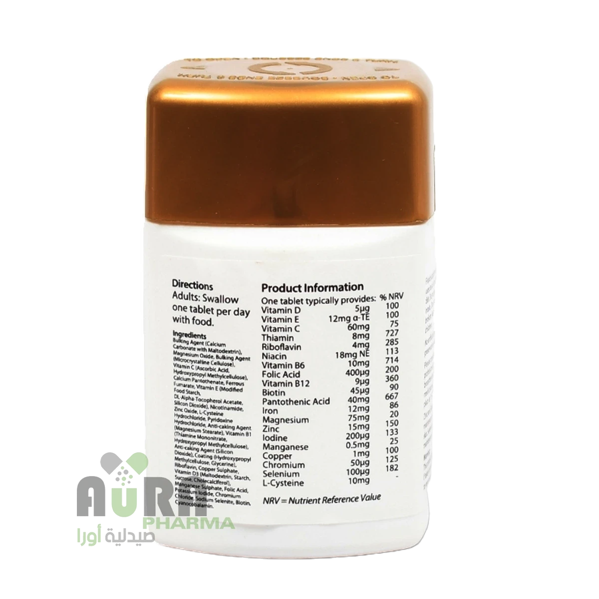 المكونات: فيتامين أ ، فيتامين ج ، فيتامين د ، فيتامين إي ، ثيامين ، ريبوفلافين ، نياسين ، فيتامين ب 6 ، حمض الفوليك ، فيتامين ب 12 ، البيوتين ، حمض البانتوثينيك ، الكالسيوم ، الحديد ، الفوسفور ، اليود ، المغنيسيوم ، الزنك ، المنغنيز ، البوتاسيوم ، الكولين ، البيتين ، الإينوزيتول ، PABA ، الحمض النووي ، الحمض النووي الريبي ، التيروزين ، السيستين ، الصويا ، البروتين (مزيج الأحماض الأمينية) ، الدعم العشبي الخاص بمزيج المكونات الأخرى ، كربونات الكالسيوم ، حمض الستريك ، السليلوز ، مالتوديكسترين ، Croscarmellose ، الصوديوم ، السيليكون ، ثاني أكسيد ، أكسيد المغنيسيوم ، ألوان المغنيسيوم ، ثاني أكسيد السيليكون ، ثاني أكسيد المغنيسيوم أحمر # 40