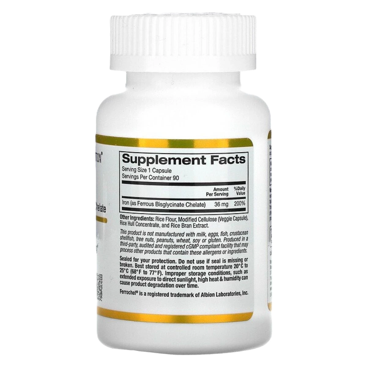 California Gold Nutrition هو منتج يحتوي على الحديد في صورة خلابة بلكسينات الحديدوز وهي تركيبة معروفة بأنها لطيفة على المعدة.