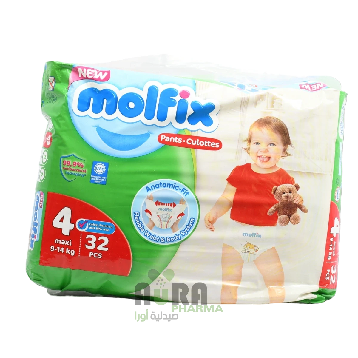 حفاضات مولفيكس كلوت بانتس رقم 4 كبير، عبوة 32 حبة.