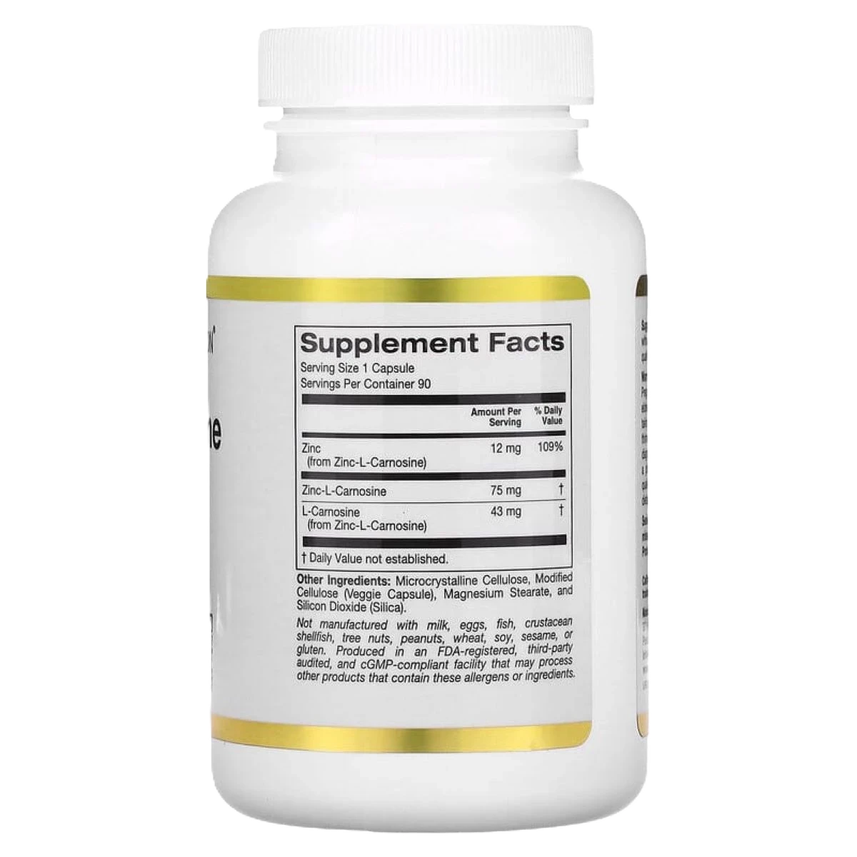 يحتوي مركب California Gold Nutrition Zinc-L-Carnosine على الزنك وL-Carnosine في كبسولات نباتية في مركب مخلب للمساعدة في تحسين امتصاص المكونات.* هذا المكمل مناسب للنباتيين، كما أنه مصنوع بدون جلوتين أو كائنات معدلة وراثيًا أو فول الصويا.