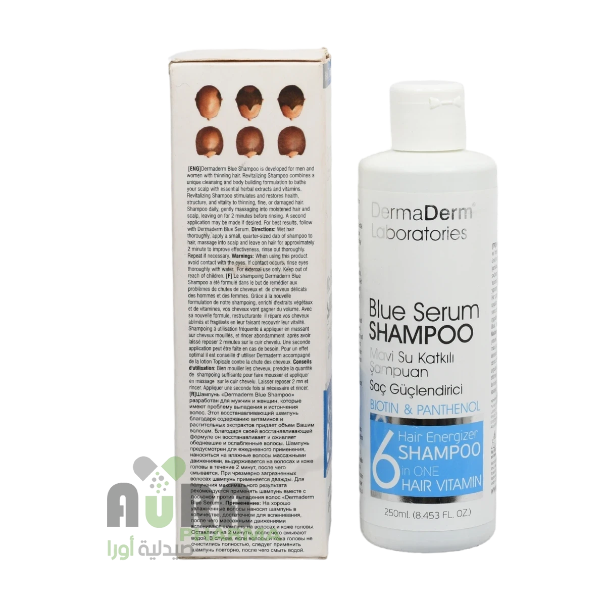 استخدمي منتج Dermaderm Blue Serum شامبو مقوي الشعر وفقًا لطريقة الاستخدام