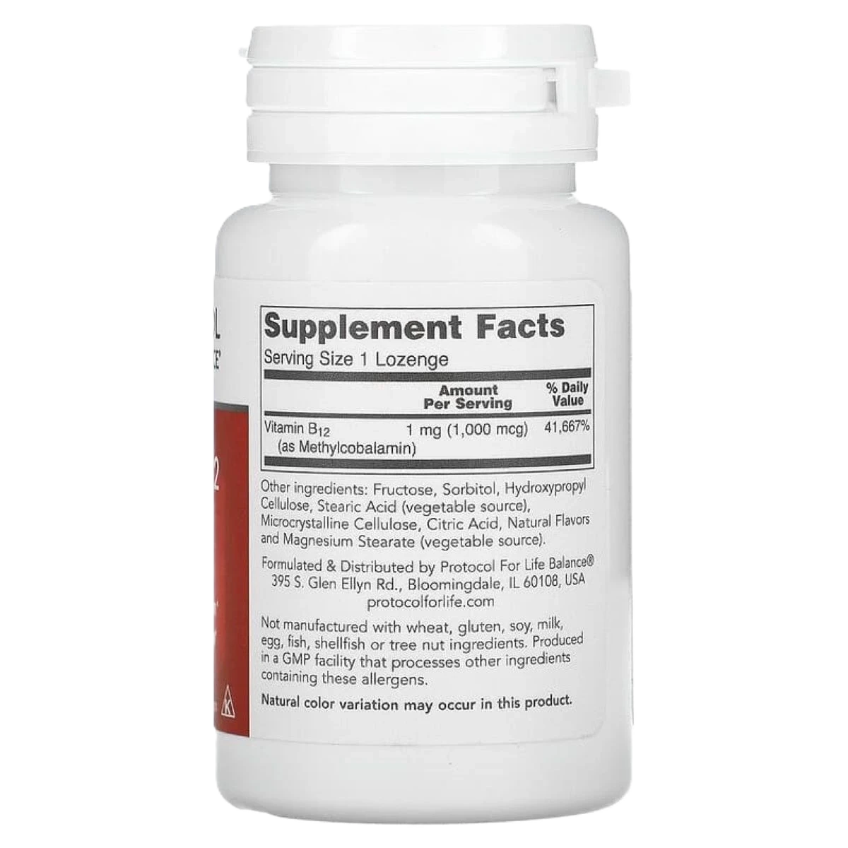 يحتوي على 1000 ميكروغرام من فيتامين B12 (ميثيل كوبالامين) لكل قرص.