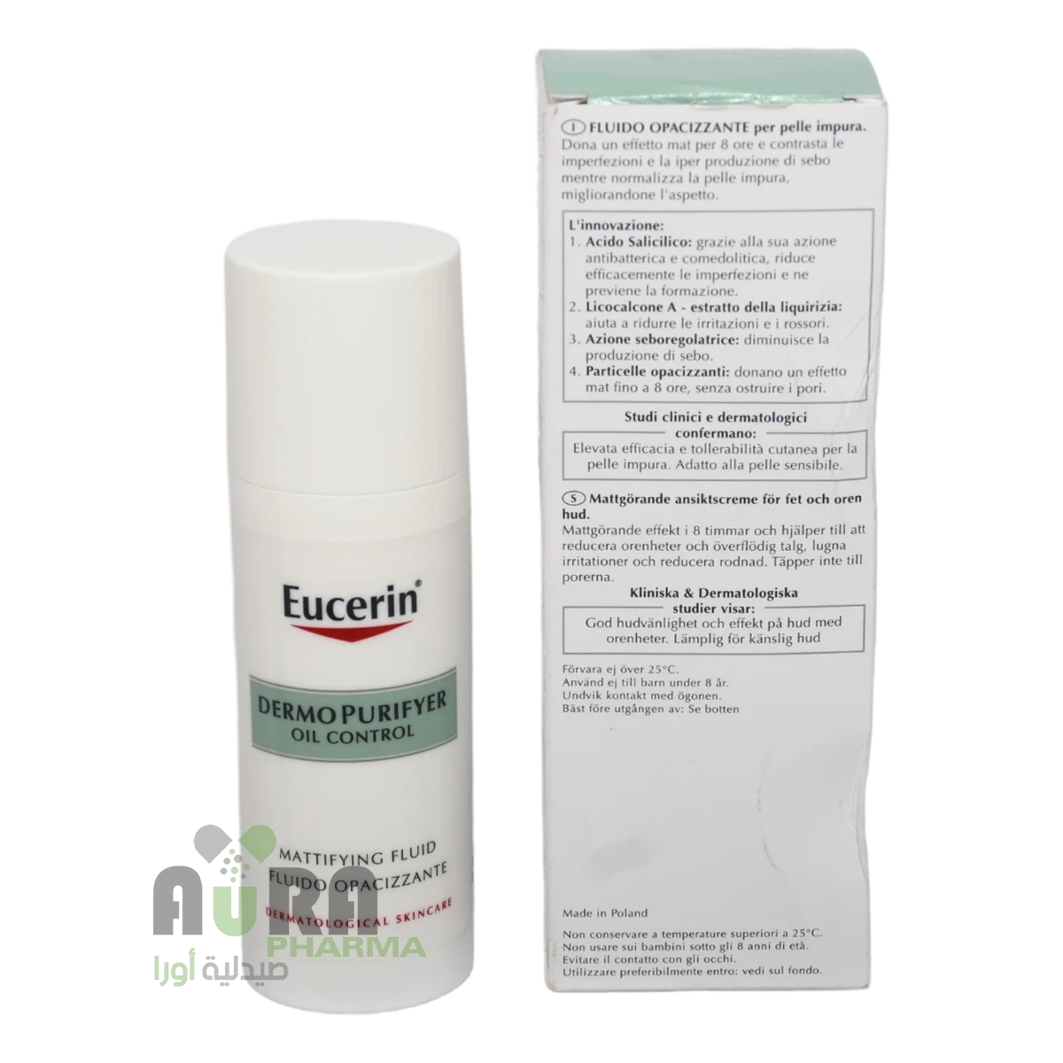 باستخدام هذا المنتج مع المنظفات والتونر من مجموعة Eucerin DermoPurifyerتجنب ملامسة عينيك.