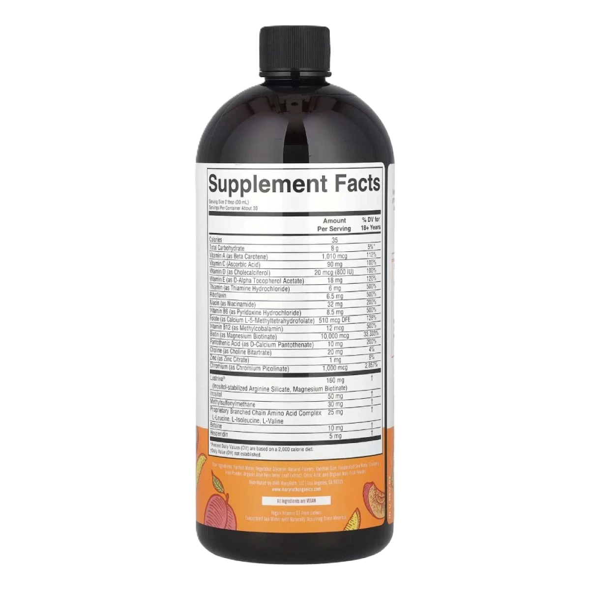 يحتوي ماري روثس فيتامينات متعدده سائله لنمو الشعر بنكهة الخوخ والمانجو