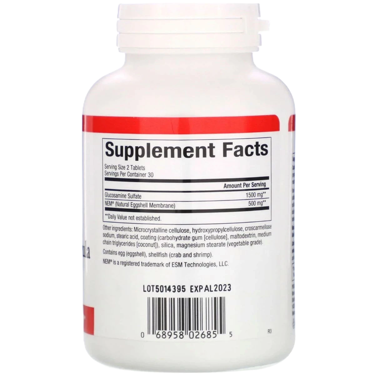ناتشورال فاكتورز نيم للركبة والمفاصل مع الجلوكوزامين من المكملات الغذائية التي تتكون من جليكوسامينوجليكان، الكوندرويتين، وحمض الهيالورنيك، ويحتوي على الكولاجين والبروتينات وكبريتات الجوكوزأمين المستخلصة من قشر البيض لدعم وراحه ومرونة المفاصل.