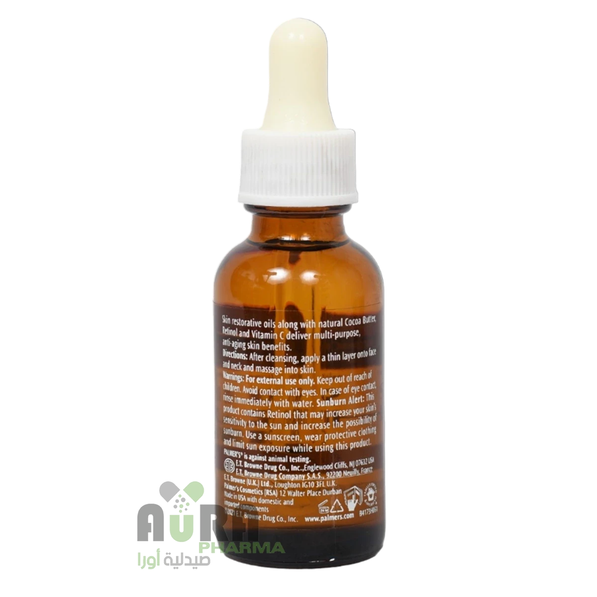 زيت بالمرز للبشرة الزيوت تساعد على تجدد الجلد جنبا إلى جنب مع زبدة الكاكاو الطبيعية الريتينول وفيتامين C تقدم فوائد أخرى متعددة كمكافحة الشيخوخة وغيرها عشرة زيوت نقية تساعد بترطيب و زيادة سلاسة الخطوط الدقيقة والتجاعيد في حين الريتينول وفيتامين سي يساعد على تحسين سطع الجلد وملمسه هذا وخفة الوزن للتركيبة غير دهنية تمتص بسرعة بمسامات الجلد في حين أن مجموعة السيتيسومات تساعد على تقديم كل من الفيتامينات والعناصر الغذائية الأساسية مباشرة في طبقة البشرة من الجلد التي تعطي البشرة رونقاً وتجعلها تبدو أصغر سنا وتمنح مظهر أكثر حيوية ونضارة مع ڤيتامين هـ لجميع أنواع البشرة مع تركيبة من الريتينول وفيتامين ج وسيتيسومات إي تم اختباره من قبل أطباء الأمراض الجلدية يحمي البشرة - زيت للتجميل - متعدد الوظائف - غير دهني - لا يسد المسام لا يسبب الحساسية في الغالب غير مسبب للرؤوس السوداء خالٍ من البارابين خالٍ من الفثالات تم اختباره من قبل أطباء الأمراض الجلدية يساعد على تحسين مظهر الخطوط الرفيعة والتجاعيد البقع السوداء تفاوت لون البشرة للبشرة المُسنة.