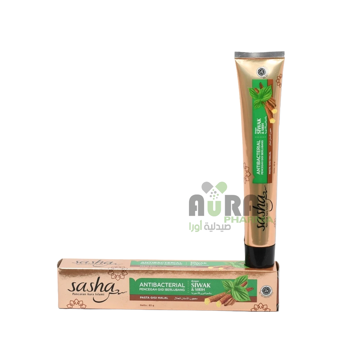 كما أن معجون أسنان ساشا خالٍ من الكحول والمكونات المشتقة من الحيوانات.