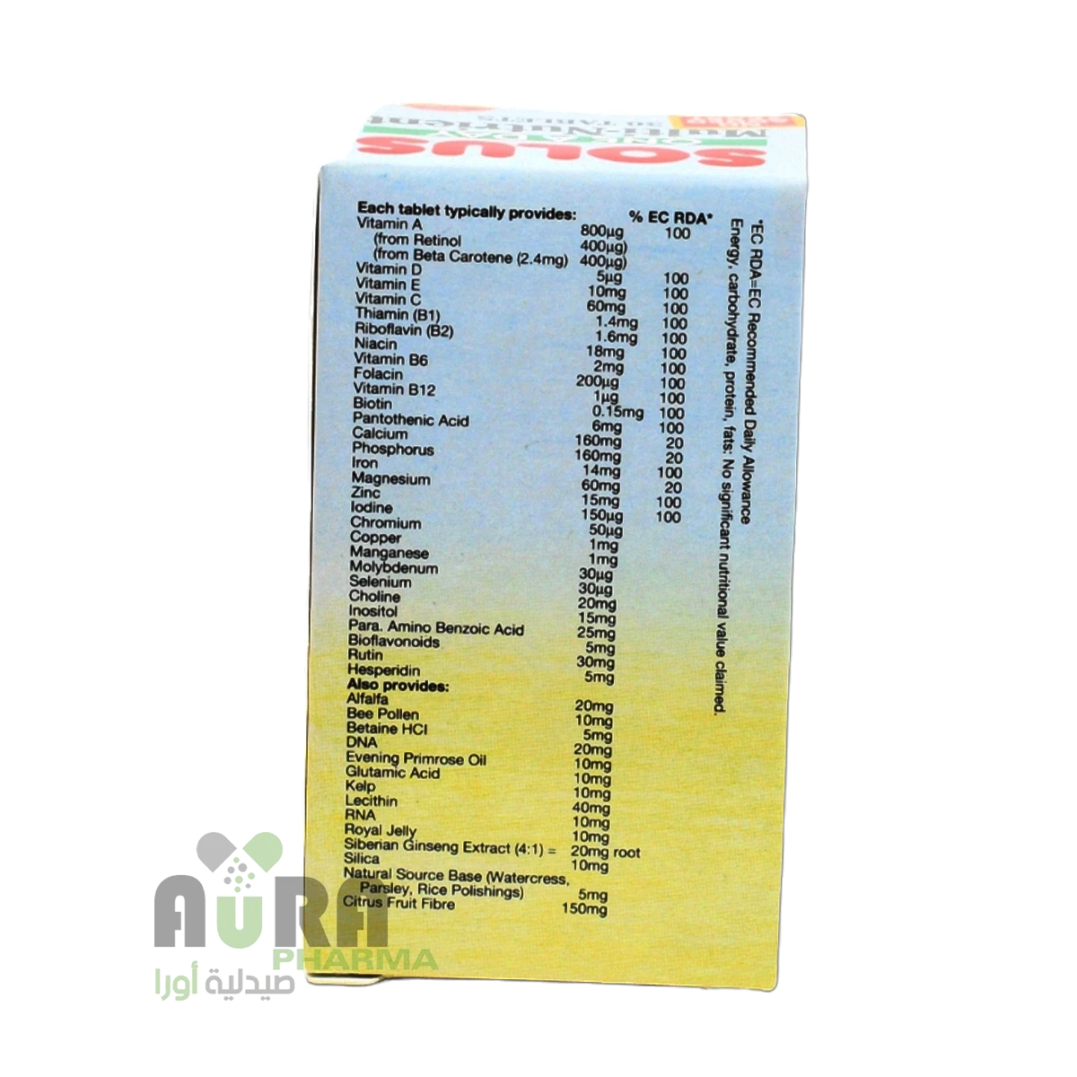 مكونات سولس ملتي فيتامين (قد تختلف حسب الصيغة والمستحضر):