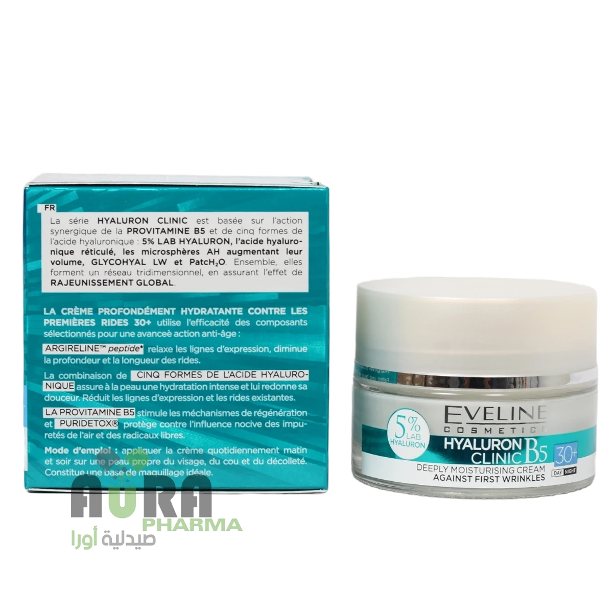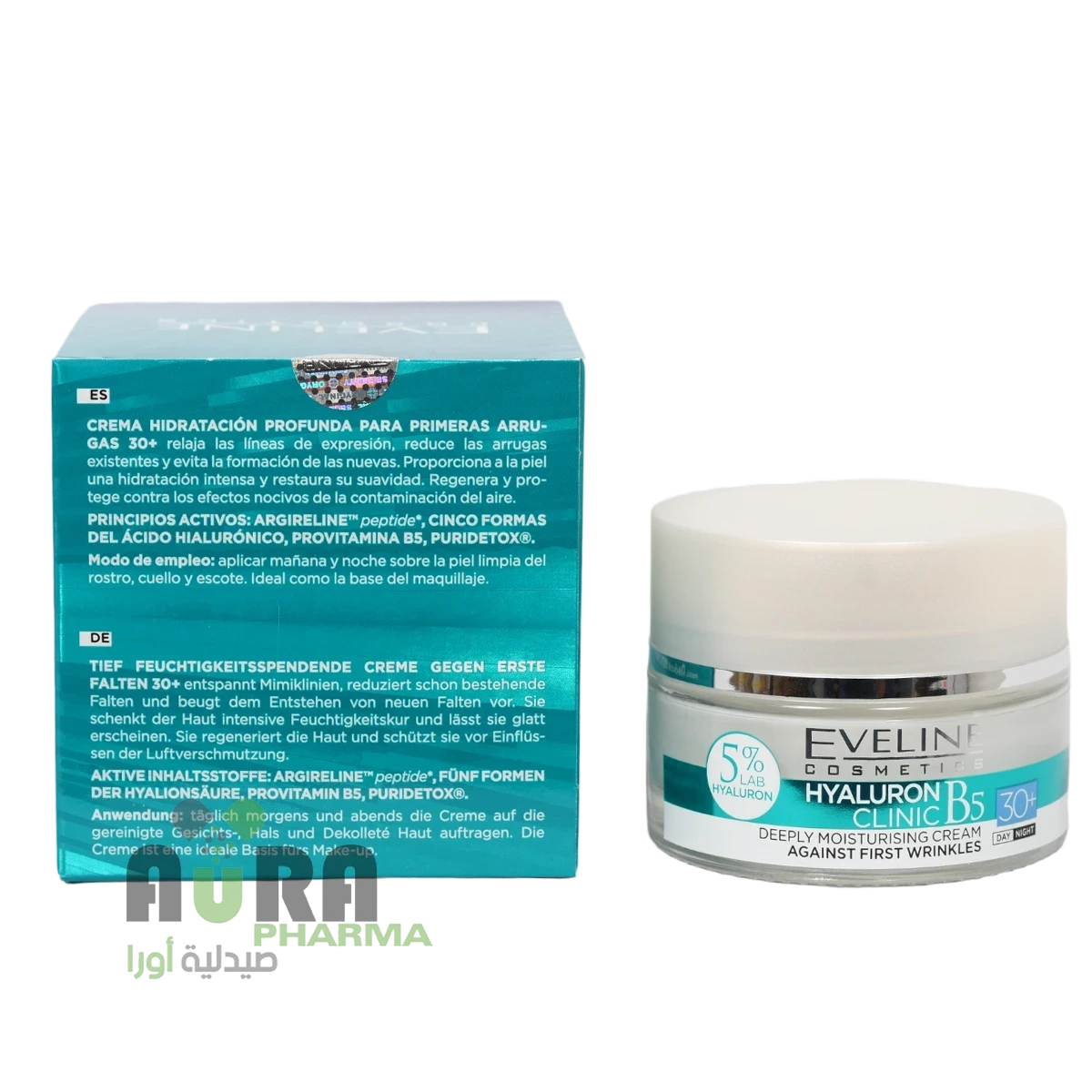 كريم معالج للبشرة من ايفلين، تركيبة غنية بفيتامين B5 ومزيج من خمسة أشكال من حمض الهيالورونيك يوفر للبشرة ترطيبًا مكثفًا ويعيد نعومتها واشراقتها ويقلل التجاعيد.