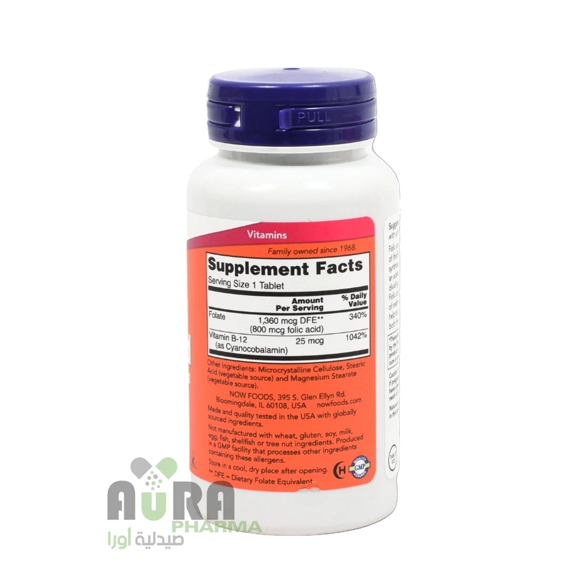 فوليك أسيد 800 مع فيتامين ب12 من NOW يأتي في عبوة تحتوي على 250 قرصًا، وهو مكمل غذائي يهدف إلى دعم صحة الجهاز العصبي وتكوين خلايا الدم الحمراء.