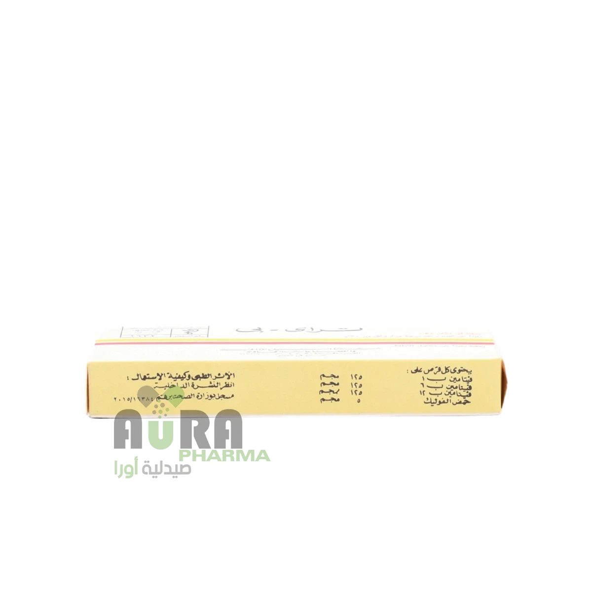 مكمل غذائي يحتوي على فيتامين ب9 و فيتامين ب12، فيتامين ب6 وفيتامين ب 1. فيتامين ب9 هو أحد أشكال فيتامين ب الذائبة في الماء، يستخدم في علاج انخفاض مستويات الفولات في الدم، يستخدم أيضا في الانيميا وعدم قدرة الأمعاء على امتصاص المغذيات بشكل صحيح، تستخدمه الحامل أيضا لمنع حدوث الإجهاض أو حدوث عيوب خلقية في الجنين مثل (السنسنة المشقوقة). أما فيتامين ب12 هو فيتامين ب12 يستخدم لعلاج إنخفاض نسبة هذا فيتامين من الدم، يعد فيتامين ب12 مهم في عملية الأيض وصحة الأعصاب و الدم، إذ إن نقصه الحاد يؤدي إلى حدوث الأنيميا ومشاكل في المعدة وتلف في الأعصاب، يتوافر هذا فيتامين بشكل طبيعي في اللحوم، سمك السردين، سمك السلمون، الحليب ومنتجات الألبان.فيتامين ب 1 هو فيتامين ب1، يتوافر طبيعيا في الحبوب والمكسرات واللحوم.فيتامين ب6 هو فيتامين ب6، يستخدم في علاج العديد من المشاكل في الأعصاب، له فوائد أيضا في صحة الجلد والشعر.