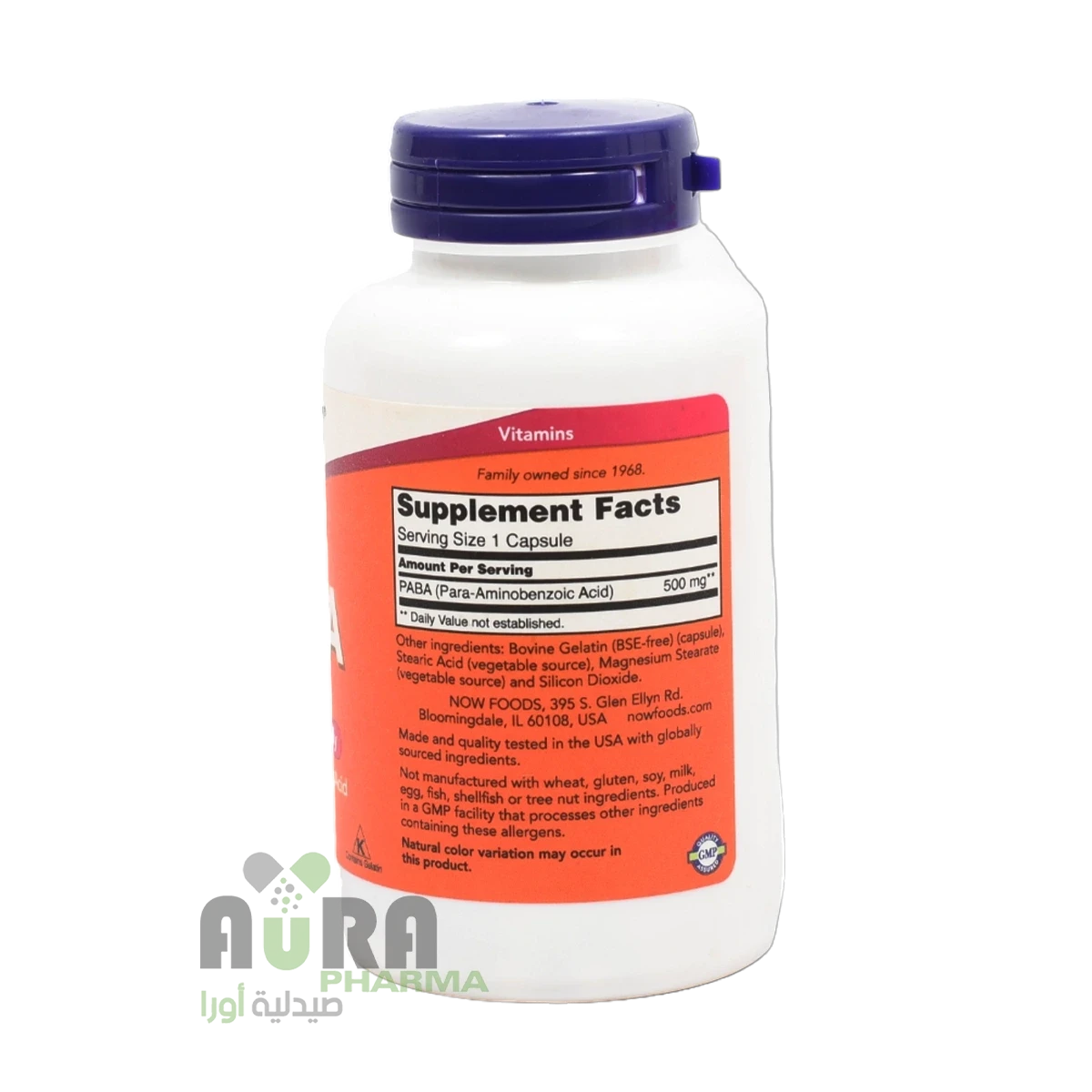 بارا أمينوبينزويك أسيد (Para-Aminobenzoic Acid - PABA) 500 ملجم من ناو (NOW Foods) 100 كبسولة هو مكمل غذائي يحتوي على حمض بارا أمينوبنزويك، والذي يُعتبر من المركبات العضوية التي تنتمي إلى مجموعة فيتامينات B، ويستخدم لدعم الصحة العامة في الجسم.
