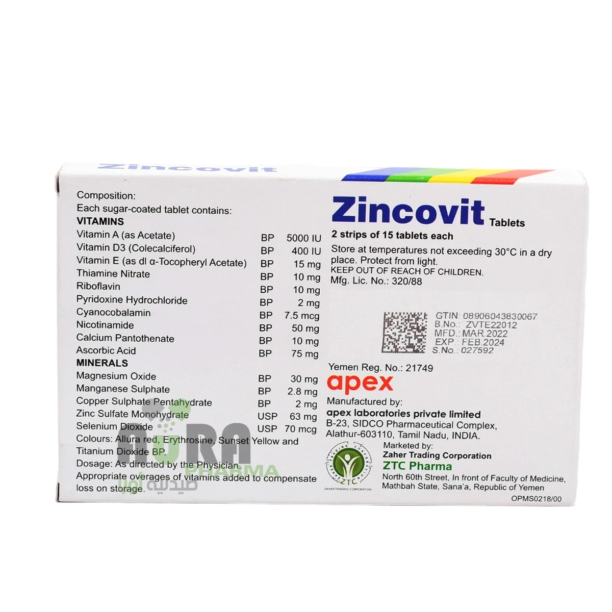 أقراص زينكوفيت المتعددة الفيتامينات والمعادن والتي تم تركيبها خصيصًا لدعم وظائف الجسم بشكل عام. تدعم الفيتامينات والمعادن الأساسية الأداء الصحي للقلب والجهاز العصبي والجهاز المناعي وما إلى ذلك. كما تحتوي على مستخلصات بذور العنب المحملة بخصائص مضادة للأكسدة وتساعد في تقليل تلف الخلايا الناجم عن الجذور الحرة.